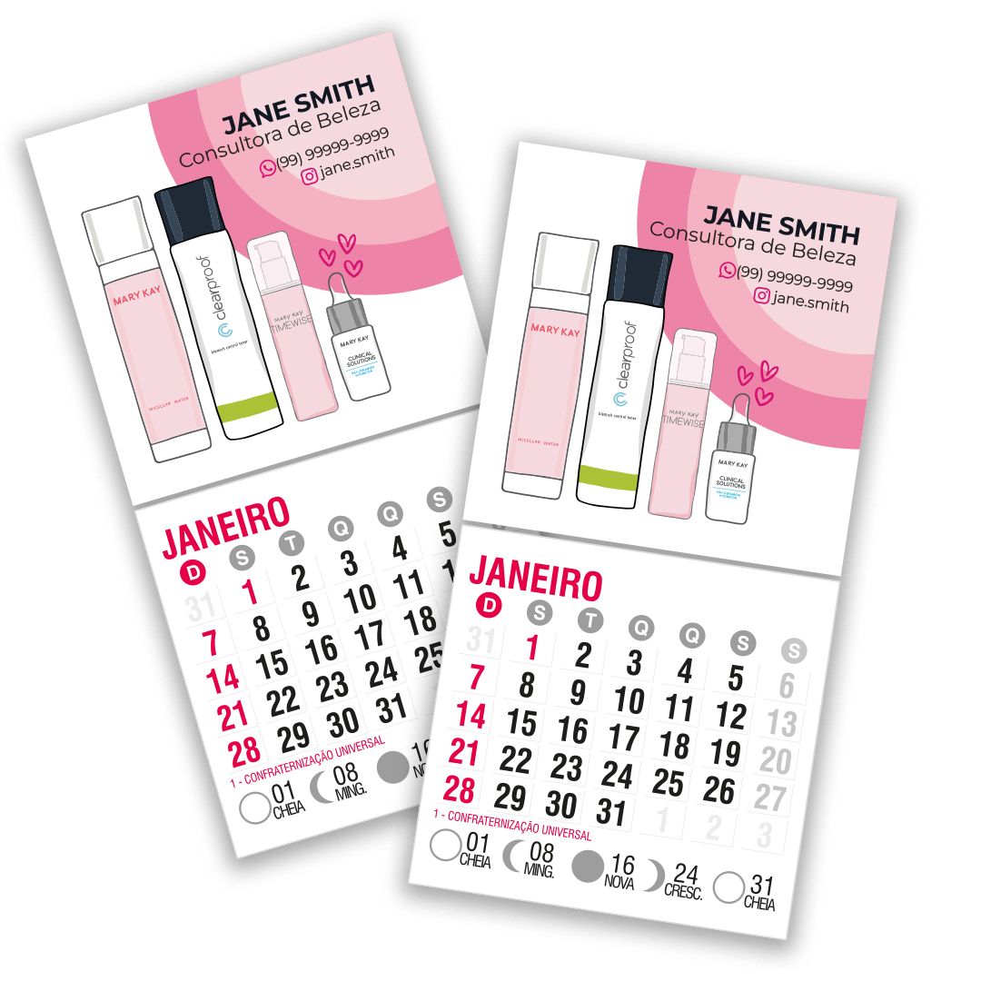 Ímã de Geladeira com Calendário 2026 é o presente ideal para manter sua marca e seu contato sempre à vista — afinal, toda cliente merece lembrar da melhor Consultora Mary Kay do Brasil!